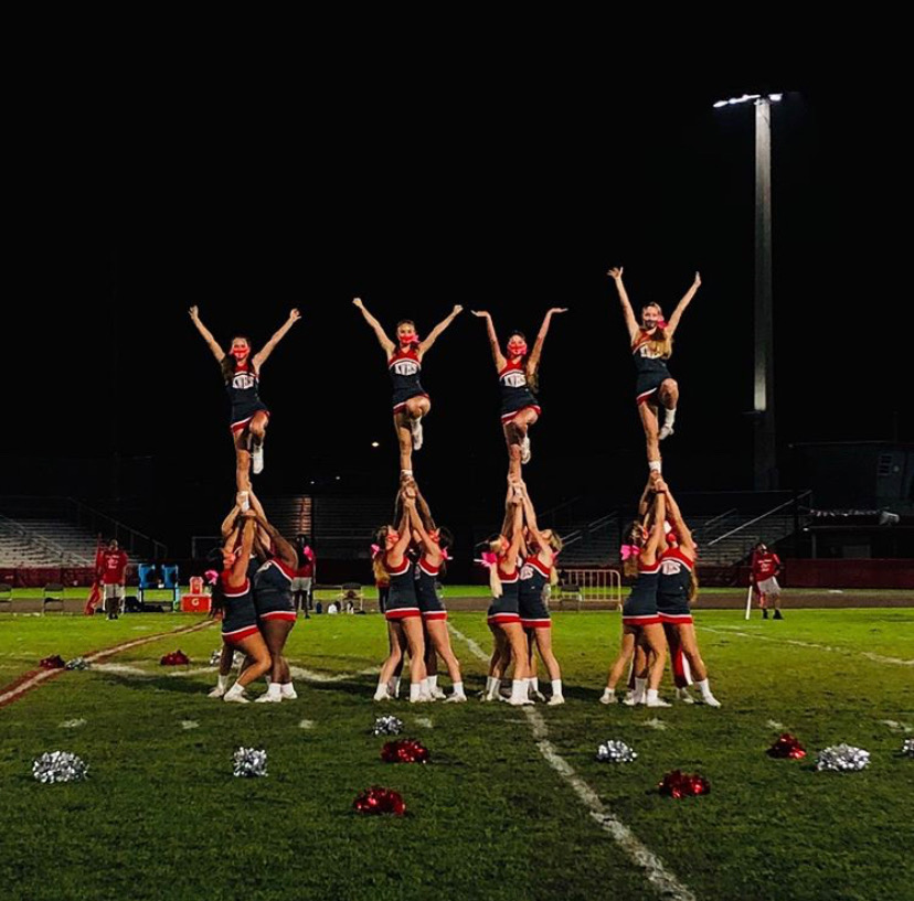 When the second quarter finished, the cheerleaders started off the halftime show with their routine, while also introducing their 2020-2021 officers: