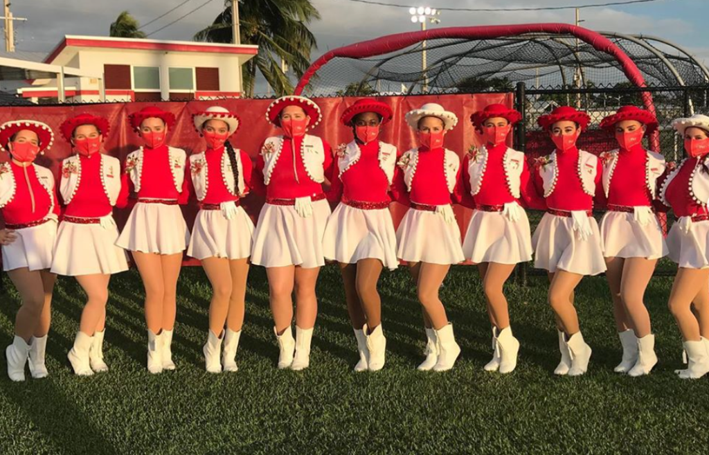 The entertainers too respected the safety guidelines and made sure that they kept six feet apart. All performers were situated on the opposite side of the field, near the baseball stadium. The Marching Conchs and the Conchettes were seated in chairs, while the cheerleaders were standing up and performing their stunts, trying to maintain social distancing as best as possible. Although they were separated, each performer still maintained the energetic atmosphere, keeping the crowd alive.