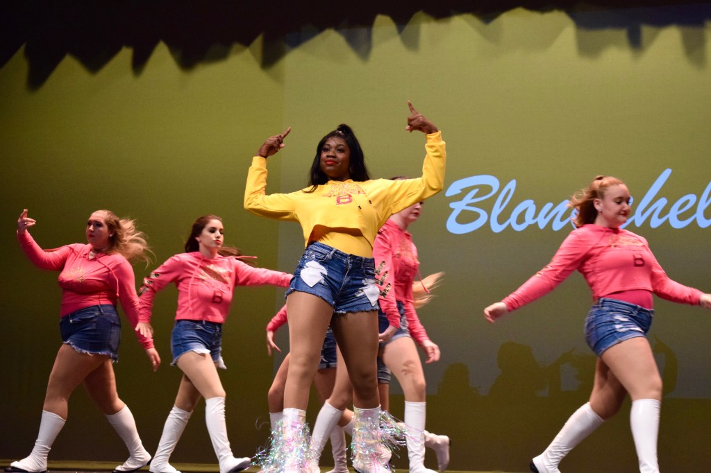 Following the opening, the rest of the underclassmen got to show off their dancing skills, performing in numerous groups led by the Conchette lieutenants. In particular, Blondine Conserve, a senior at KWHS, created choreography to a mix of Beyonce songs, imitating Beyonce’s Coachella 2018 performance. To give off a Coachella atmosphere, Conserve cleverly projected the name “Blondchella” on the auditorium stage, along with the yellow lighting in the background. While watching Conserve’s routine, getting bored was not even an option. Hollers came from the crowd as they were cheering her on, enjoying her enthusiastic energy and all the effort put into every step.