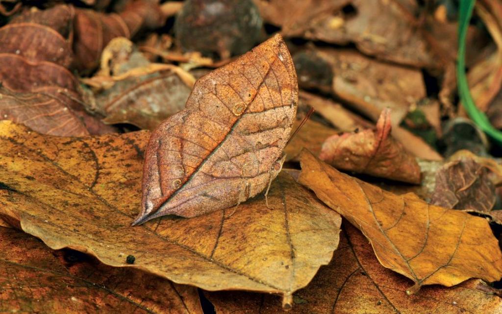Kallima inachus, the orange oakleaf, also referred to as the dead leaf butterfly, can be found living all over Asia from India to Japan. This butterfly is referred to as dead leaf because when its wings are closed, it perfectly resembles a dead or fallen brown leaf. Although its colors aren’t vibrant or bright, it still has an amazingly shocking appearance. As you could have guessed, its leaf-like wings are used to camalouge from its predators.