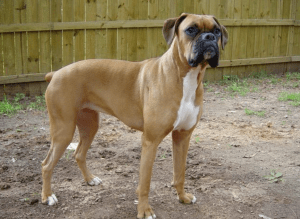 Boxers are large to medium dogs, growing between 21 – 25 inches tall. They typically weigh 50 – 60 pounds, depending on gender. They live to be around 10 – 12 years old. These dogs are wonderful with kids, and usually love them more than the average family member. They are decent with strangers and after a few sniffs around the legs, are often willing to be pet. They are okay around other dogs but keep an eye out just in case of an incident. They are playful dogs, with high energy levels, and the need for something to do. They could have some difficulty adjusting to sudden changes but are easily trained.