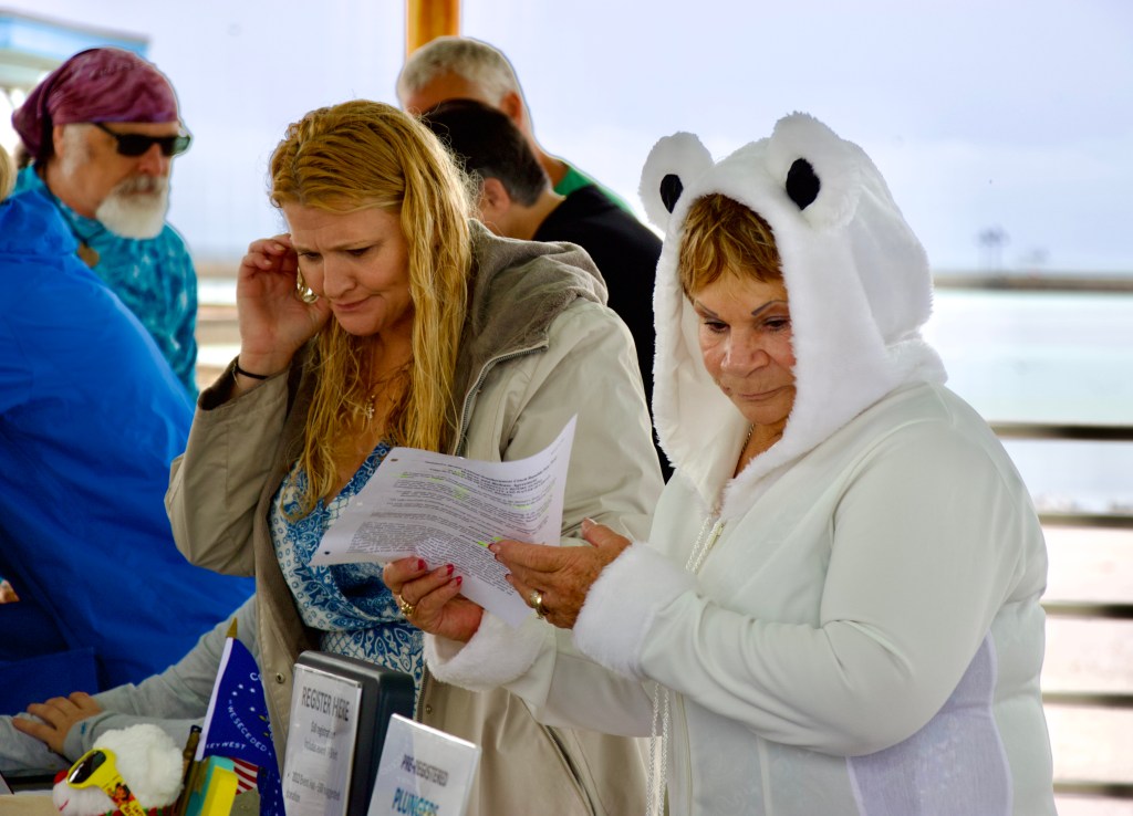 Participants sign in under the beach’s pavilion to get checked in for the event. Once checked in, all members must wait till noon to rush into the “freezing” (about 70 degrees Fahrenheit) ocean water. Seeing the rush of the people and a man in a polar bear suit into the sea gives an exhilarating feeling to locals and tourists. It’s a great way to have social fun and support a great cause.