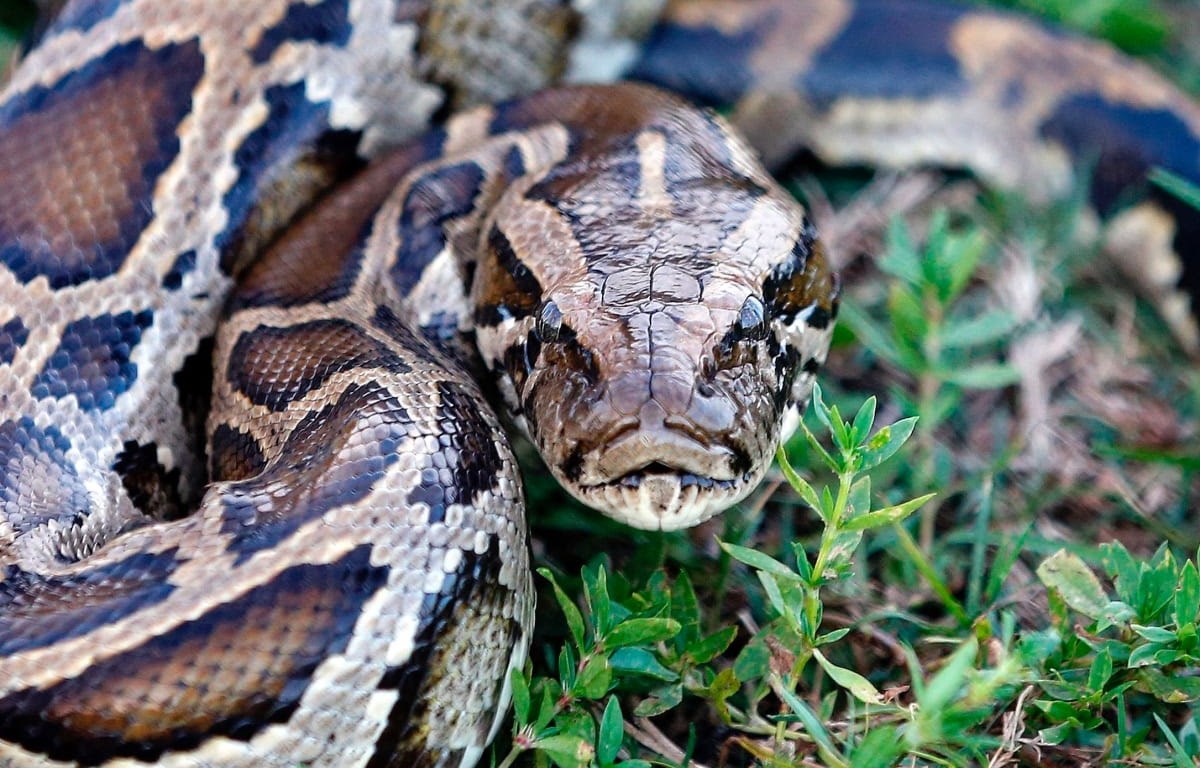 Burmese Pythons are an invasive species that likely found their way to Florida during exotic pet trades in the 1990s. The pythons have thrived since joining the ecosystems of Florida, even establishing breeding colonies from Loxahatchee National Wildlife Refuge in western Palm Beach County to Key Largo. The species is so invasive that python hunts have been hosted to try and limit the population.